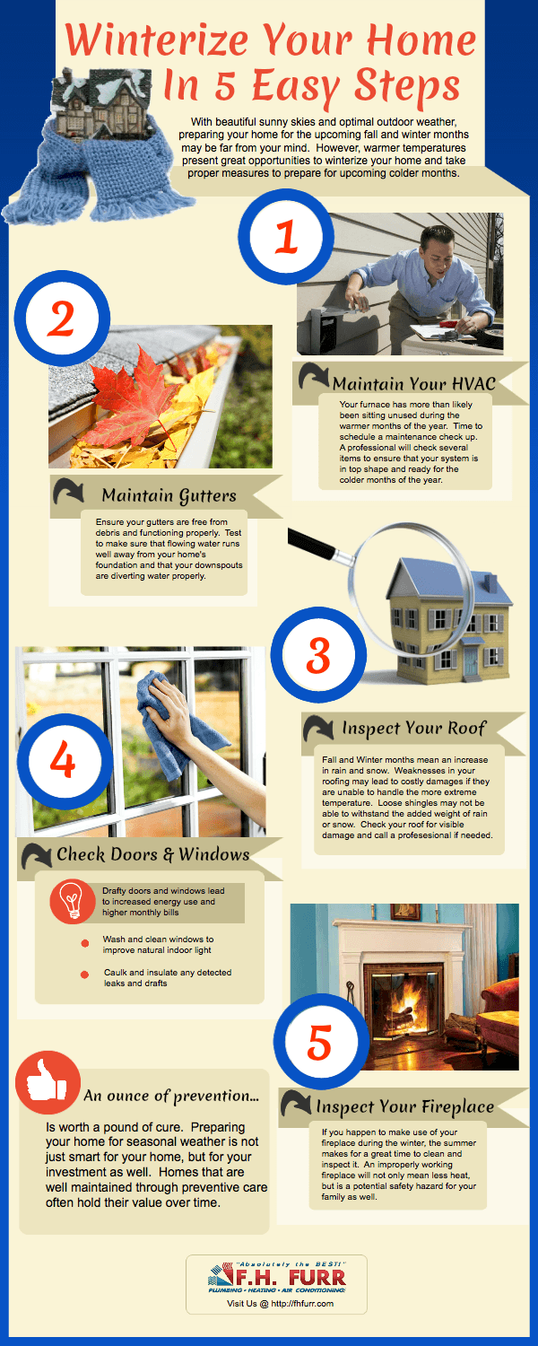 Summer is in swing, but reminders that the Fall is soon approaching are all around us… From Back-to-School Sales and cooling temperatures, the signs that the Fall and Winter are approaching cannot be missed. With still optimal outdoor temperatures, now is the perfect time to gear up your home for the coming months ahead, and with them, cooler weather. Here are five easy steps to winterize your home.